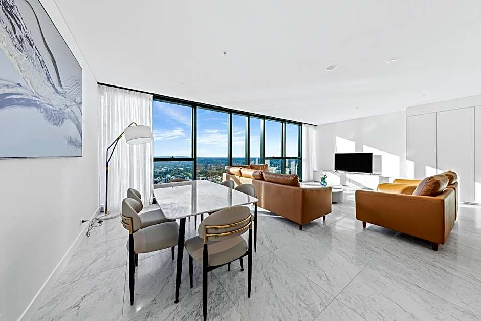 Located on levels 43 - 79 with views across Brisbane, this apartment has access to the recreational facilities on level 40 and 66. This modern, fully self-contained, 3-bedroom, 2-bathroom apartment has a well-appointed, fully equipped kitchen. There are a dining and living area, laundry facilities, and free unlimited WiFi.